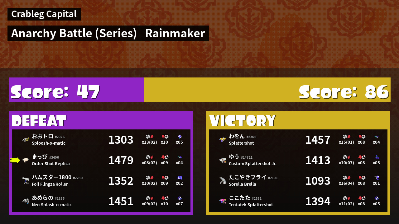 | Mode | Rainmaker - Anarchy Battle (Series) |
