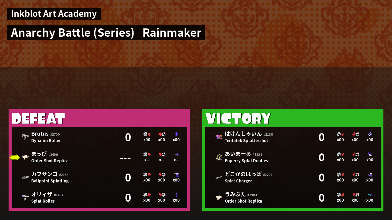 | Mode | Rainmaker - Anarchy Battle (Series) |