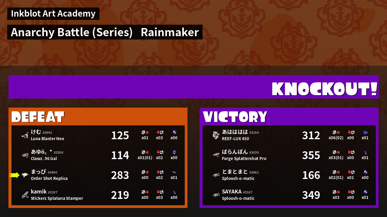 | Mode | Rainmaker - Anarchy Battle (Series) |