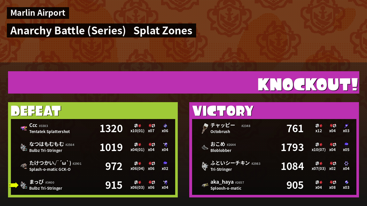 | Mode | Splat Zones - Anarchy Battle (Series) |