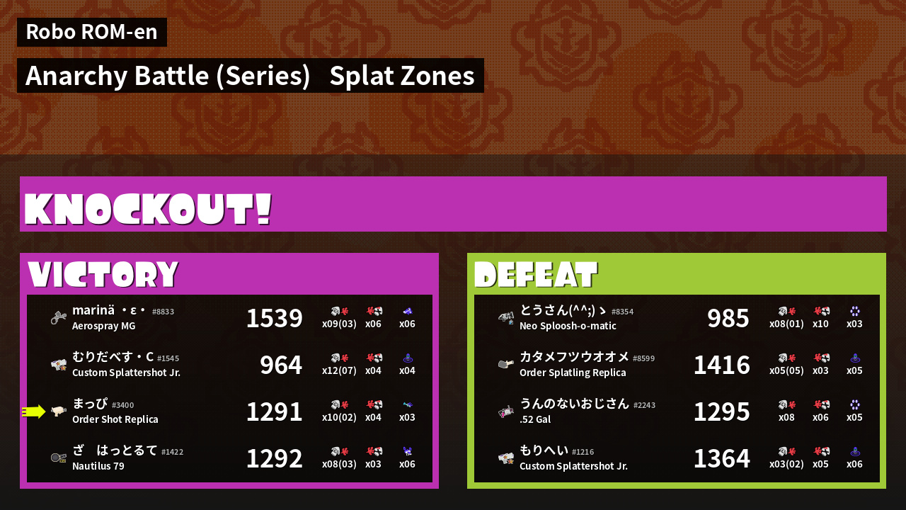 | Mode | Splat Zones - Anarchy Battle (Series) |
