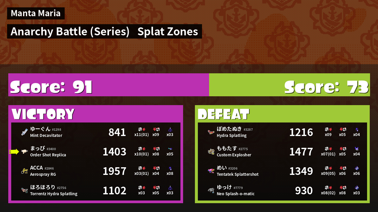 Results of まっぴ's Battle