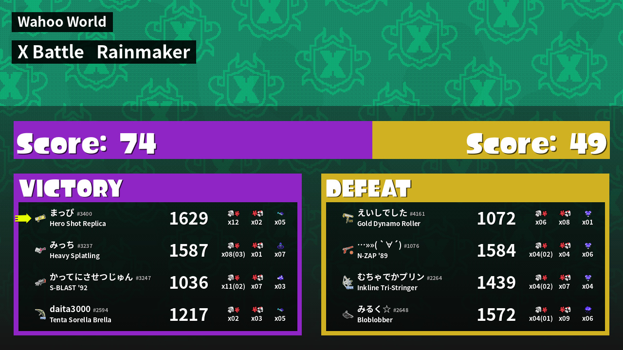 | Medals | #1 Overall Splatter #1 Turf Inker #1 Enemy Splatter |