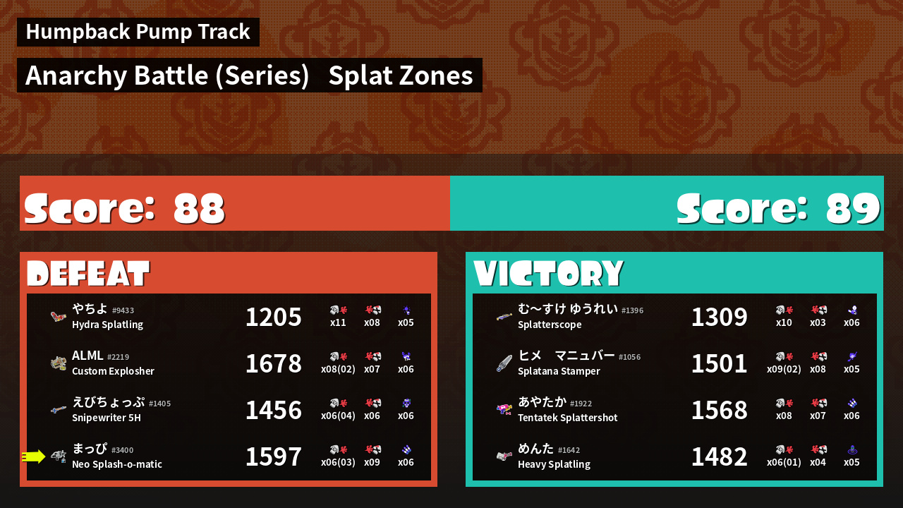 | Mode | Splat Zones - Anarchy Battle (Series) |