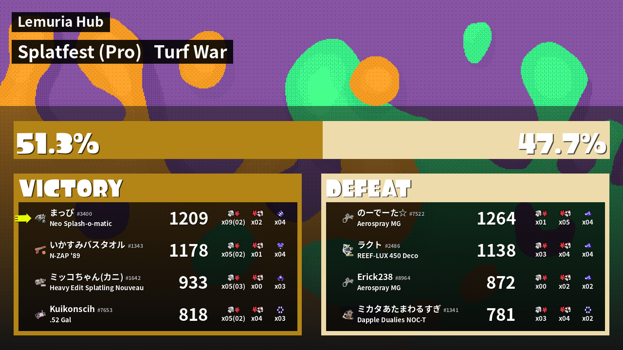| Mode | Turf War - Splatfest (Pro) |
