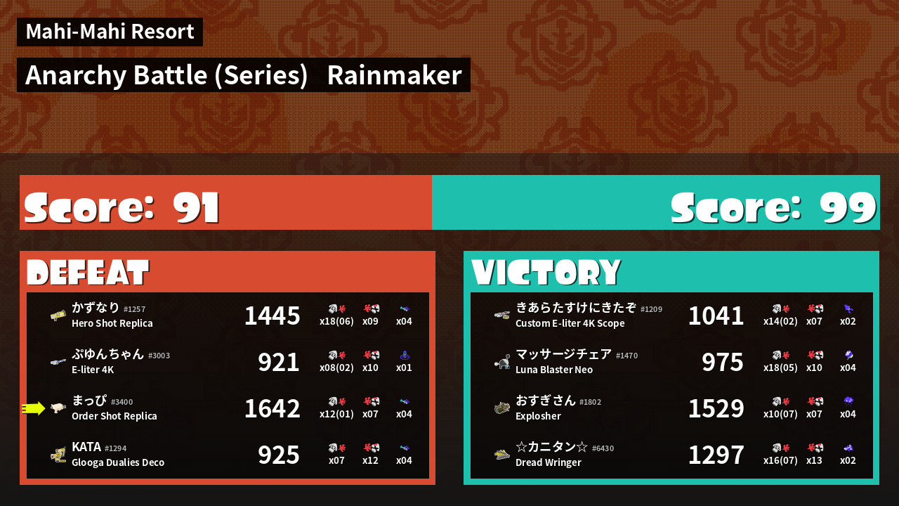 | Mode | Rainmaker - Anarchy Battle (Series) |