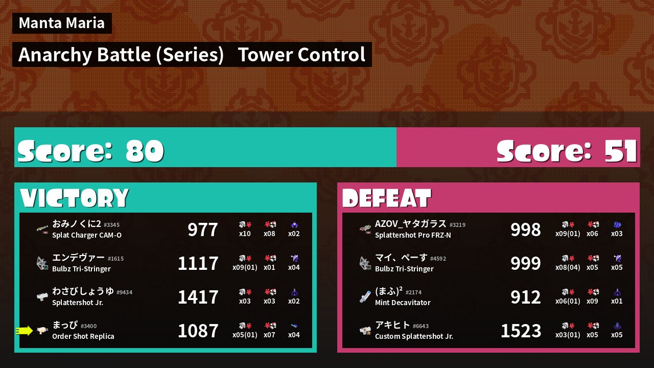 Results of まっぴ's Battle