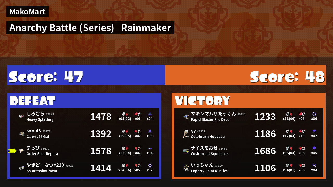 | Mode | Rainmaker - Anarchy Battle (Series) |