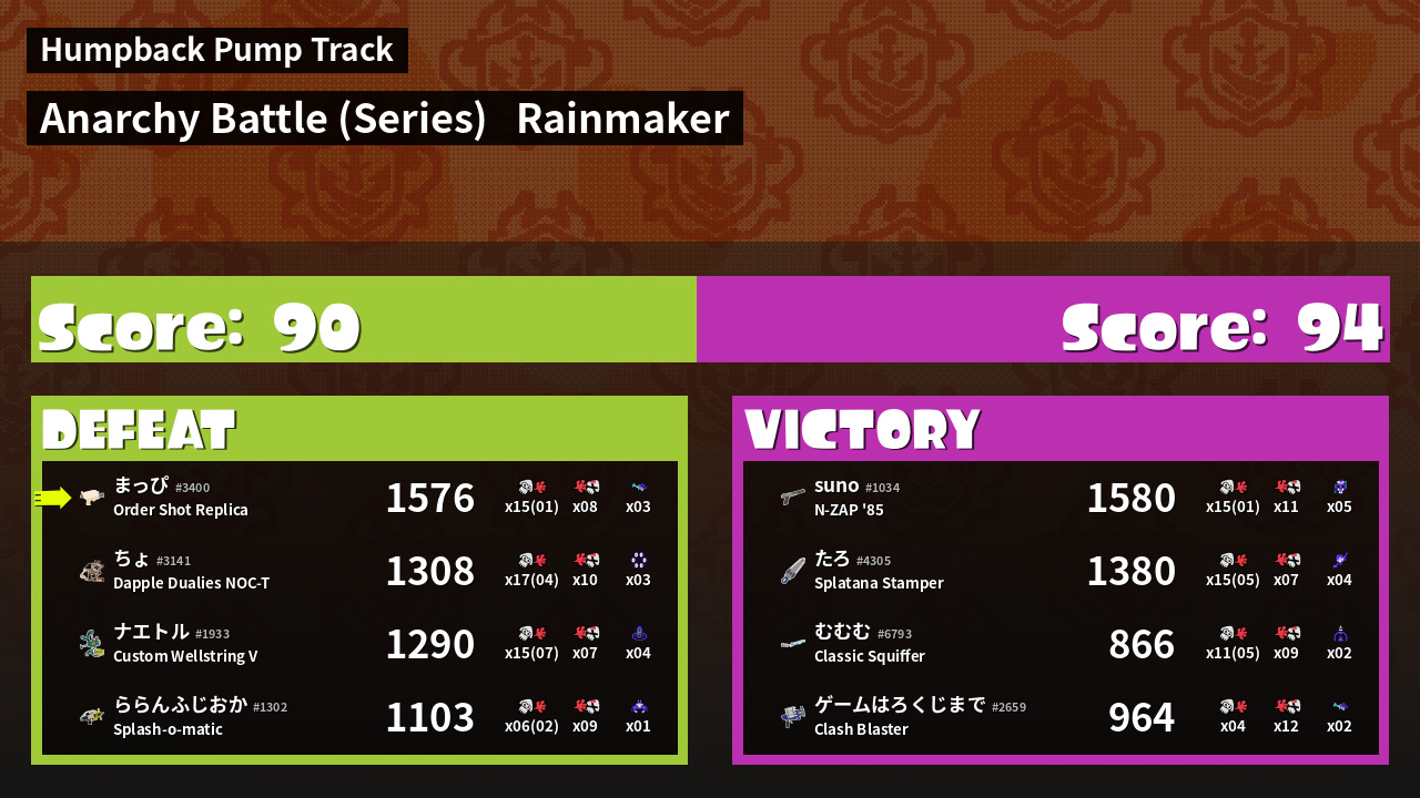 | Mode | Rainmaker - Anarchy Battle (Series) |