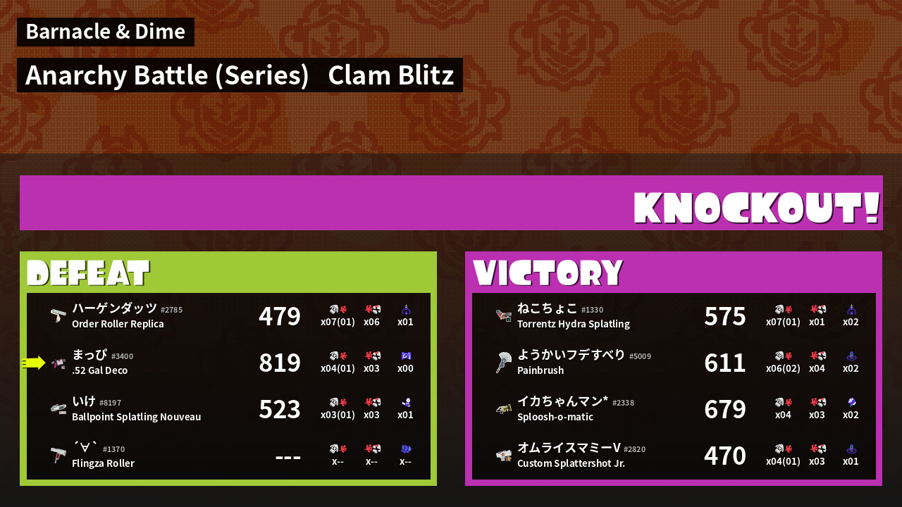 | Mode | Clam Blitz - Anarchy Battle (Series) |