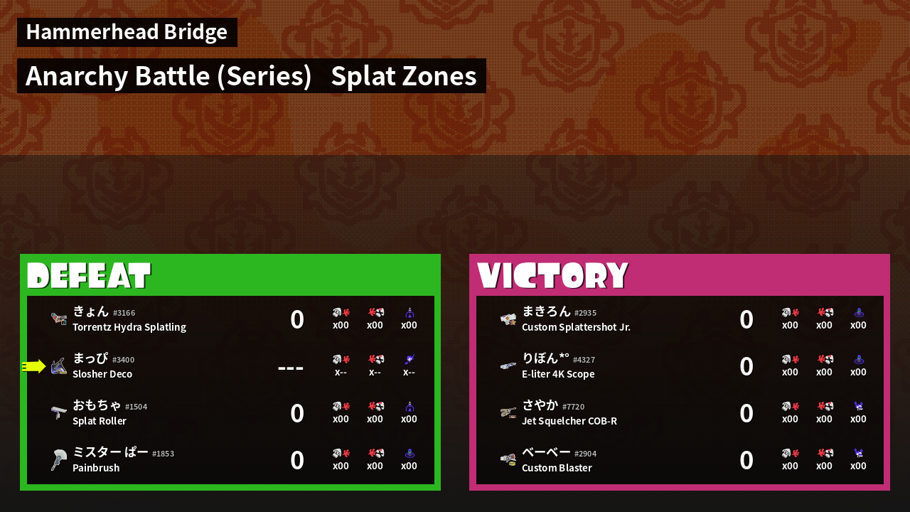 | Mode | Splat Zones - Anarchy Battle (Series) |