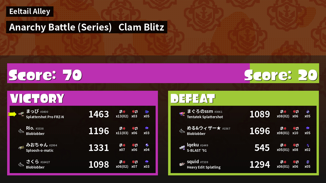 | Mode | Clam Blitz - Anarchy Battle (Series) |