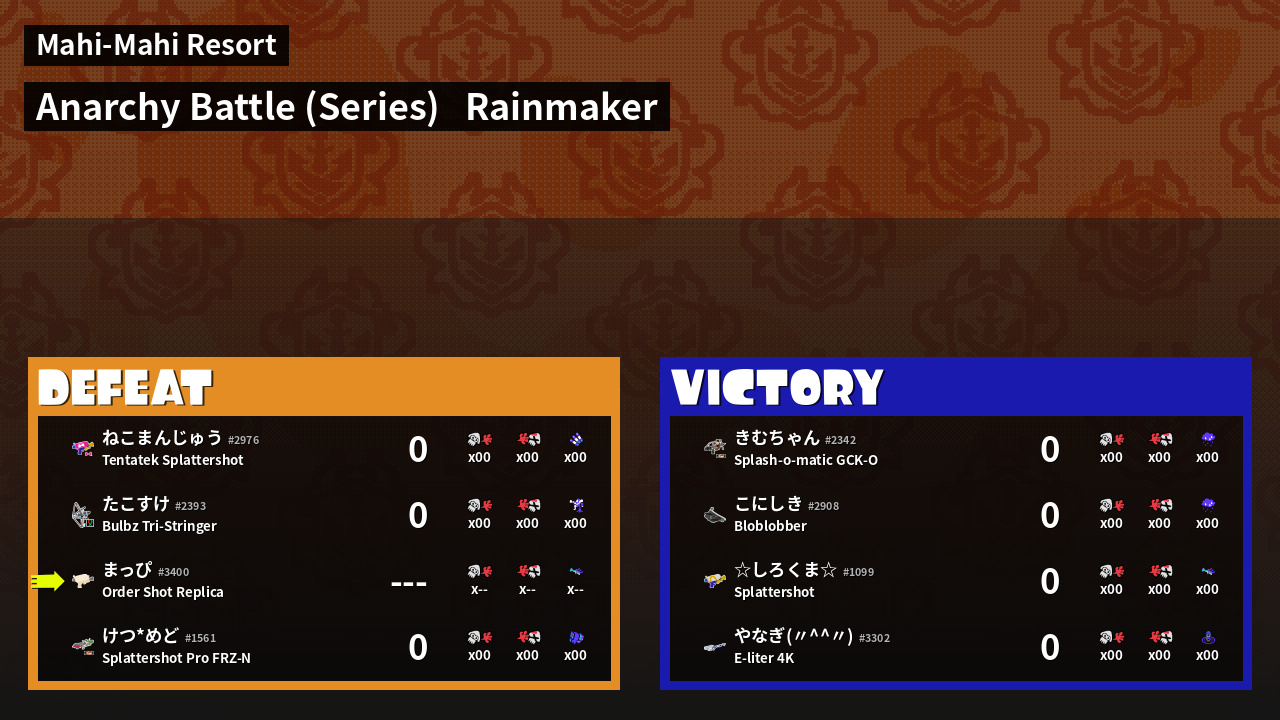 | Mode | Rainmaker - Anarchy Battle (Series) |