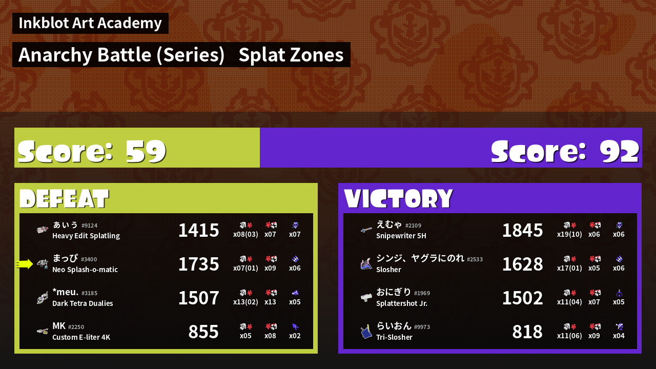 | Mode | Splat Zones - Anarchy Battle (Series) |