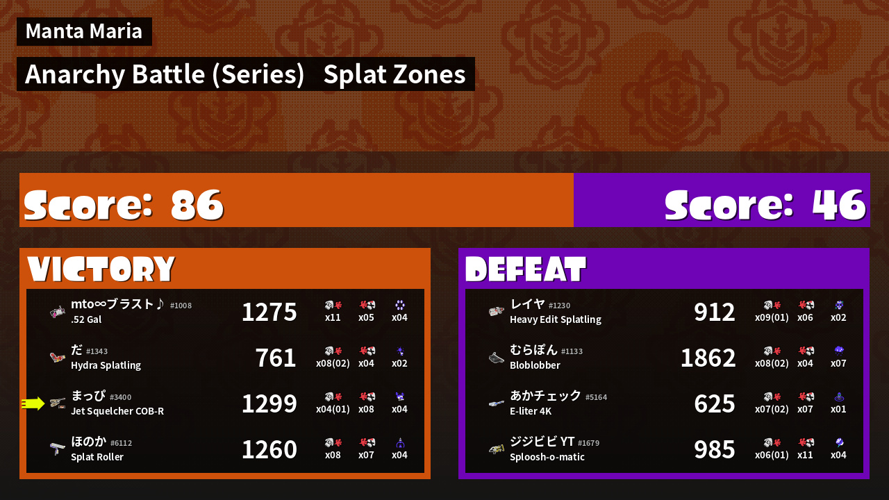 | Mode | Splat Zones - Anarchy Battle (Series) |