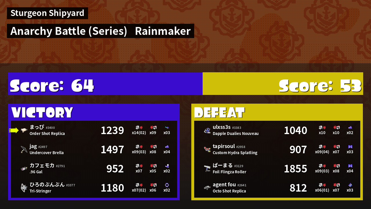 | Mode | Rainmaker - Anarchy Battle (Series) |