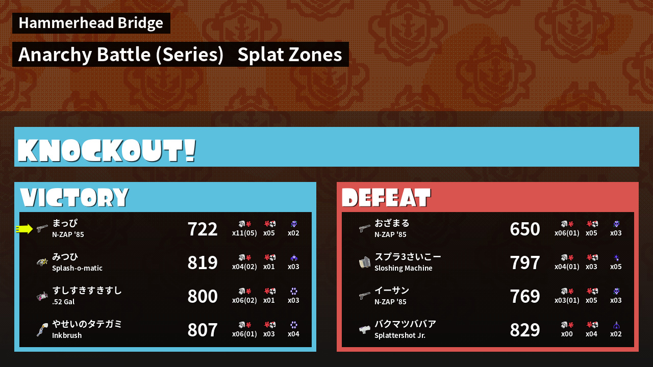 Kills / Deaths | 6 + 5 / 5 > Kill Ratio: 1.20 |