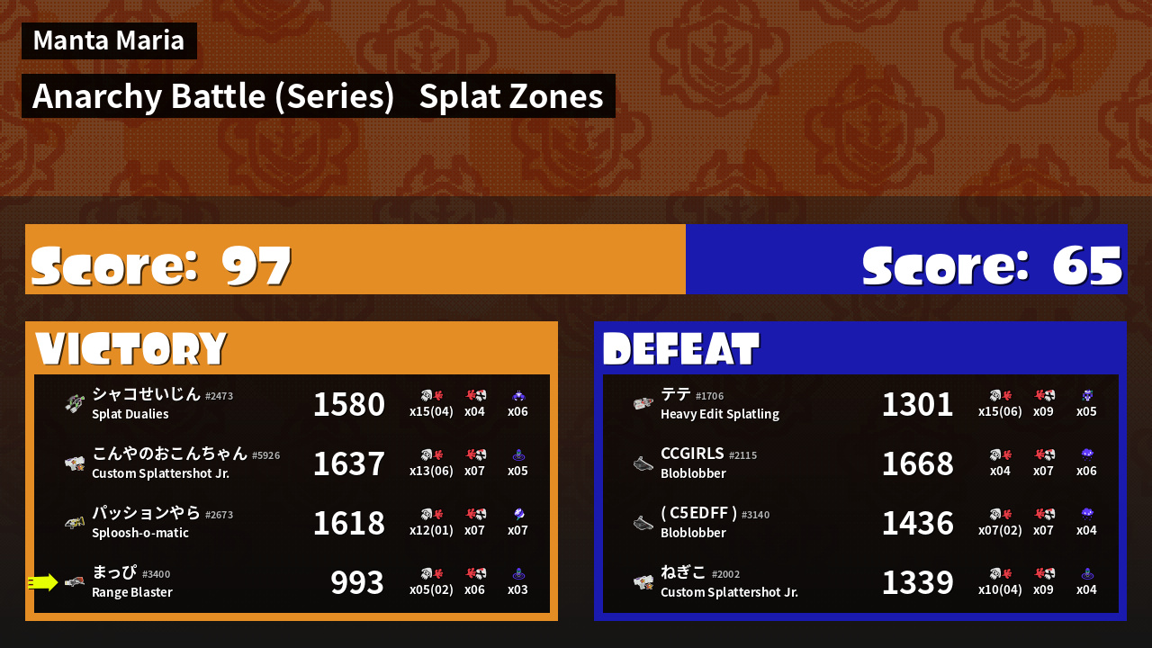 | Mode | Splat Zones - Anarchy Battle (Series) |