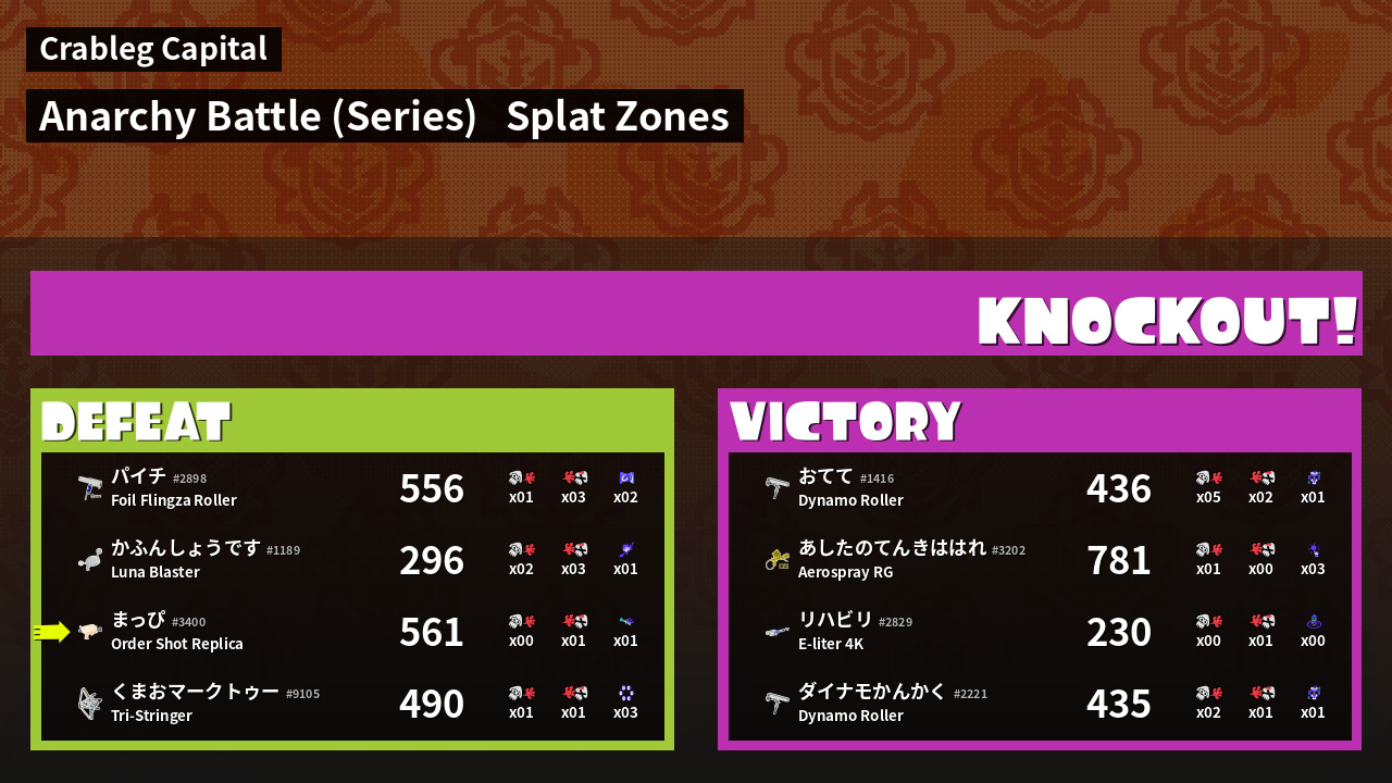 | Mode | Splat Zones - Anarchy Battle (Series) |