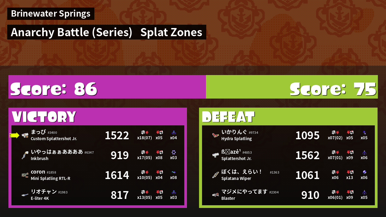 | Mode | Splat Zones - Anarchy Battle (Series) |