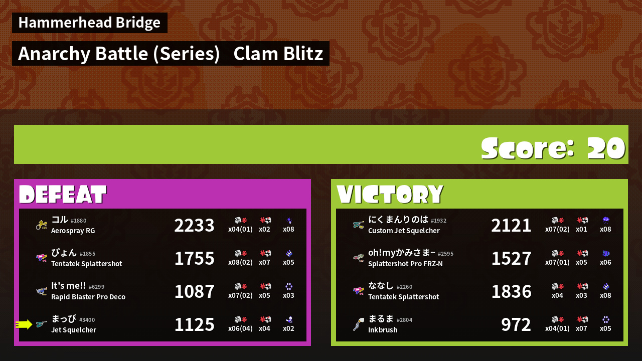 | Mode | Clam Blitz - Anarchy Battle (Series) |
