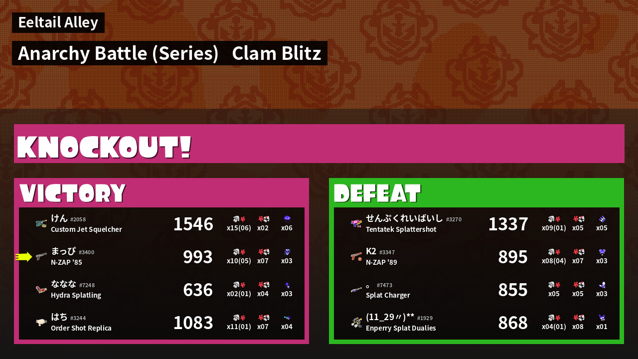 | Mode | Clam Blitz - Anarchy Battle (Series) |