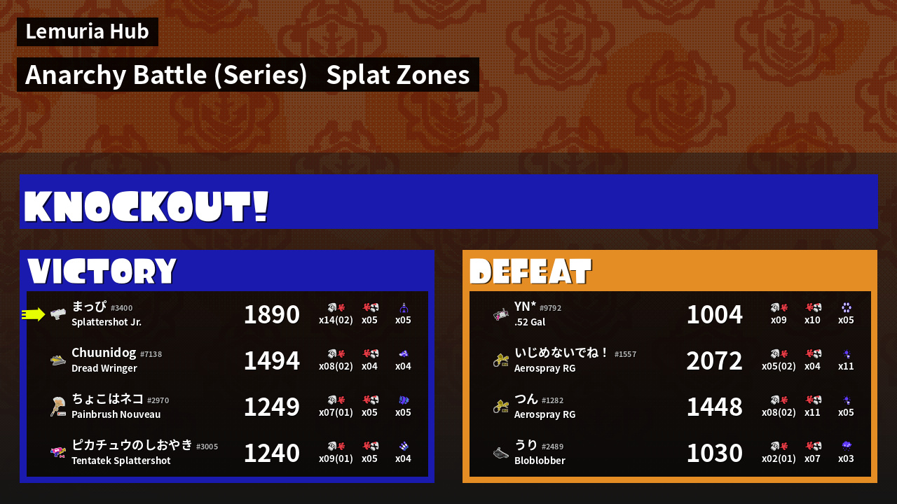 | Mode | Splat Zones - Anarchy Battle (Series) |