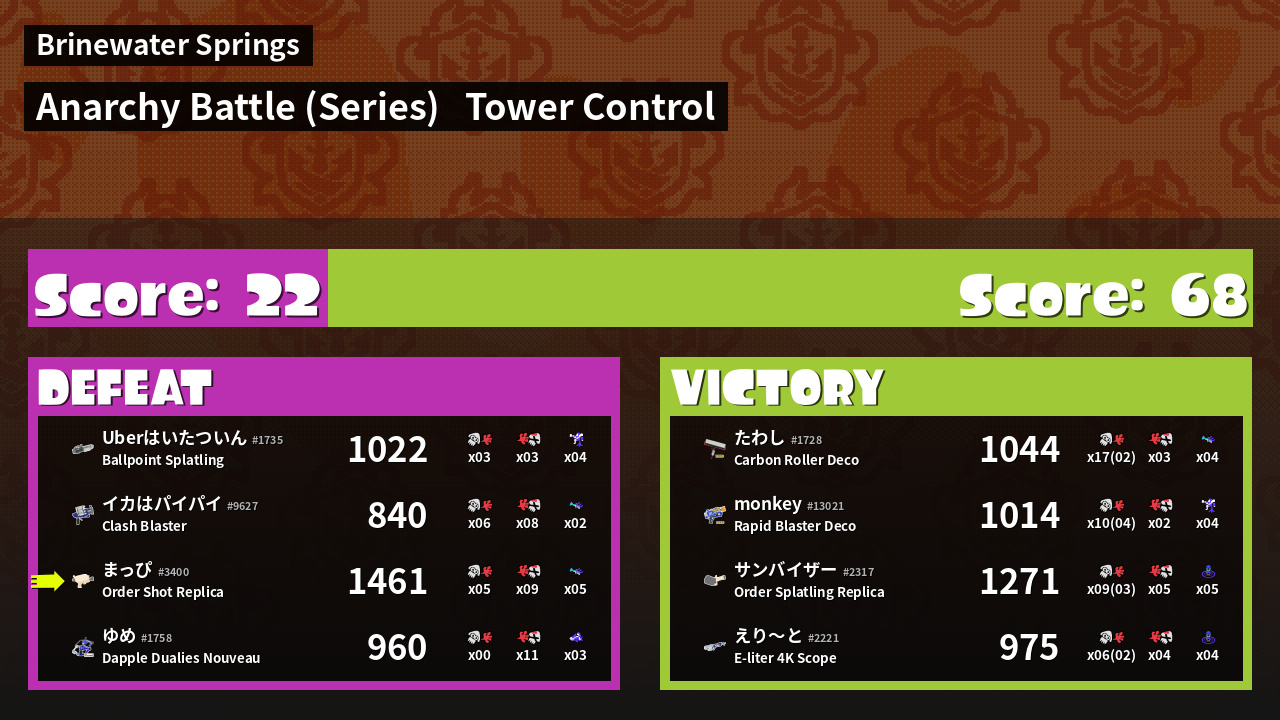 | Mode | Tower Control - Anarchy Battle (Series) |