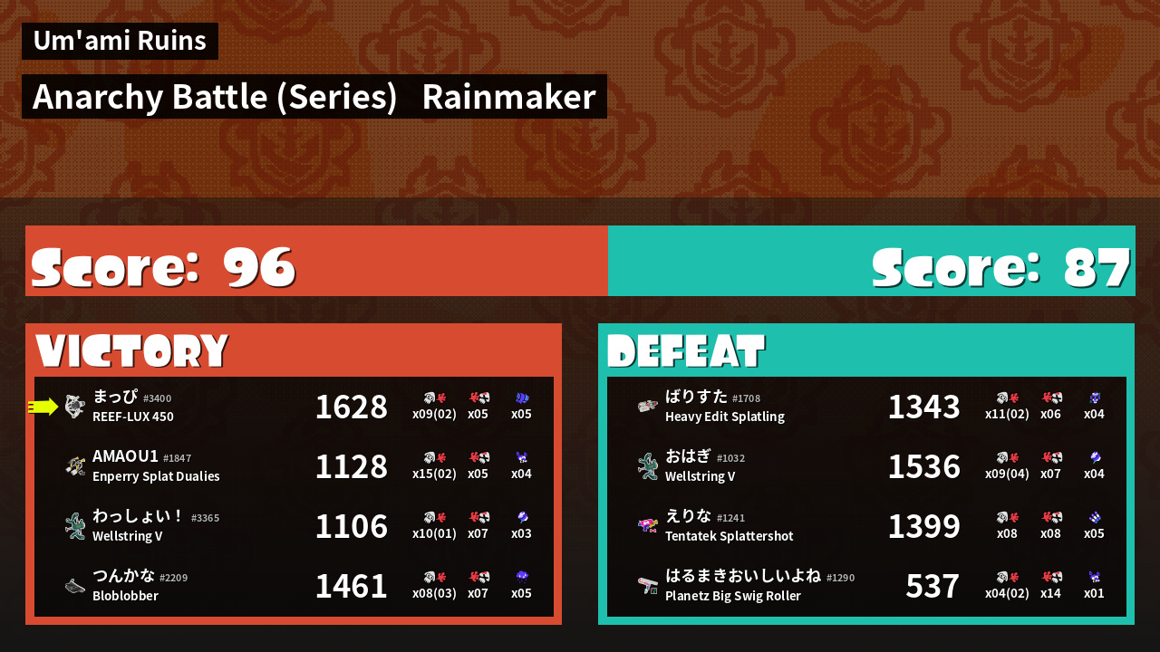 | Mode | Rainmaker - Anarchy Battle (Series) |