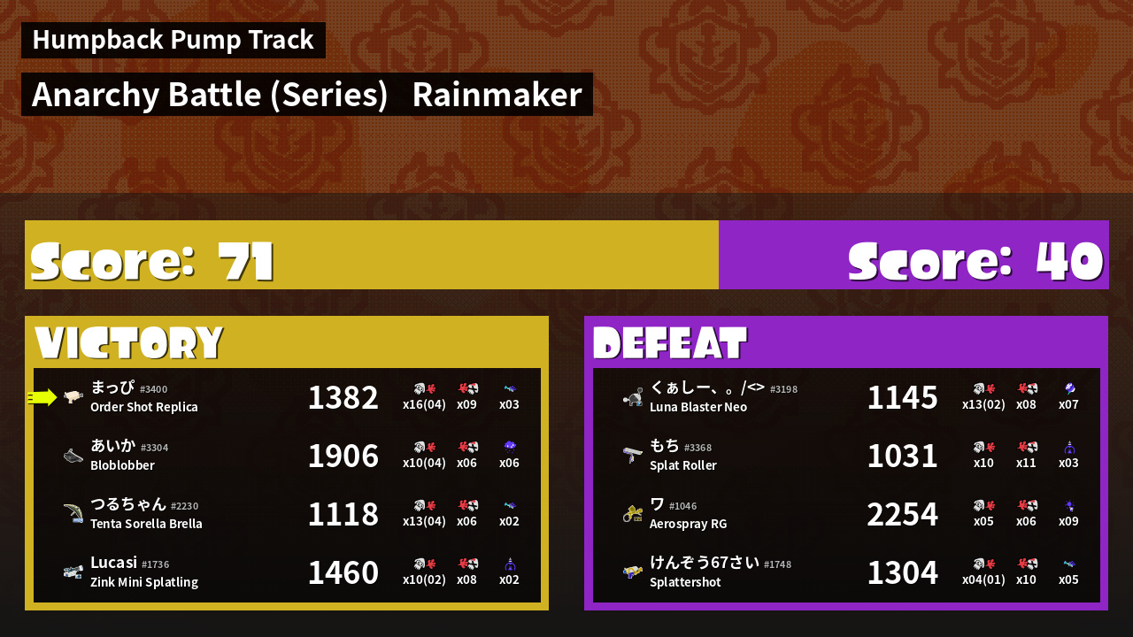 | Mode | Rainmaker - Anarchy Battle (Series) |