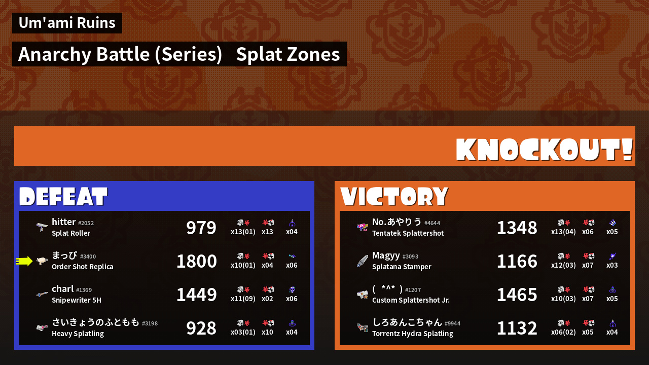 | Mode | Splat Zones - Anarchy Battle (Series) |