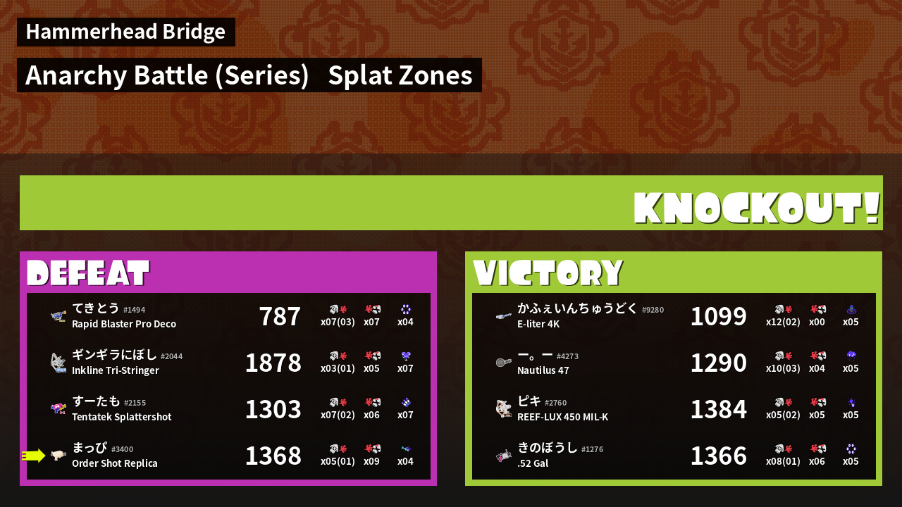 | Mode | Splat Zones - Anarchy Battle (Series) |