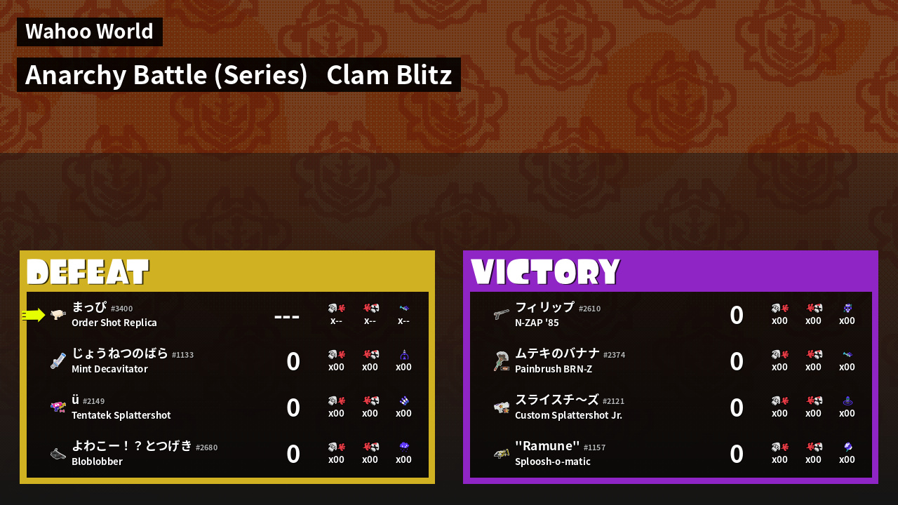 | Mode | Clam Blitz - Anarchy Battle (Series) |