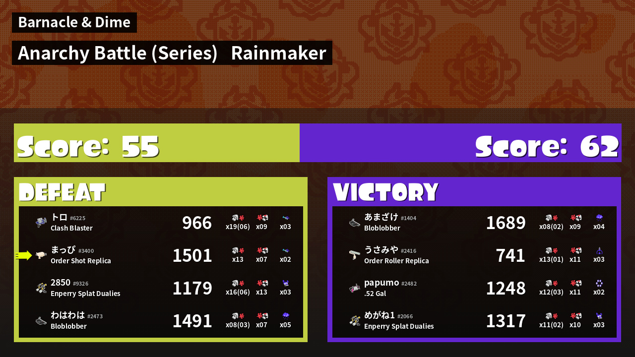 Results of まっぴ's Battle