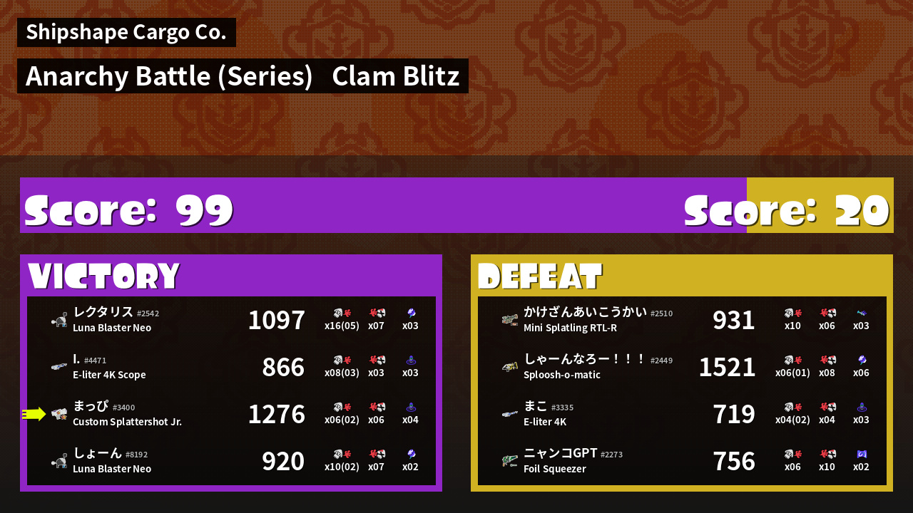 | Mode | Clam Blitz - Anarchy Battle (Series) |