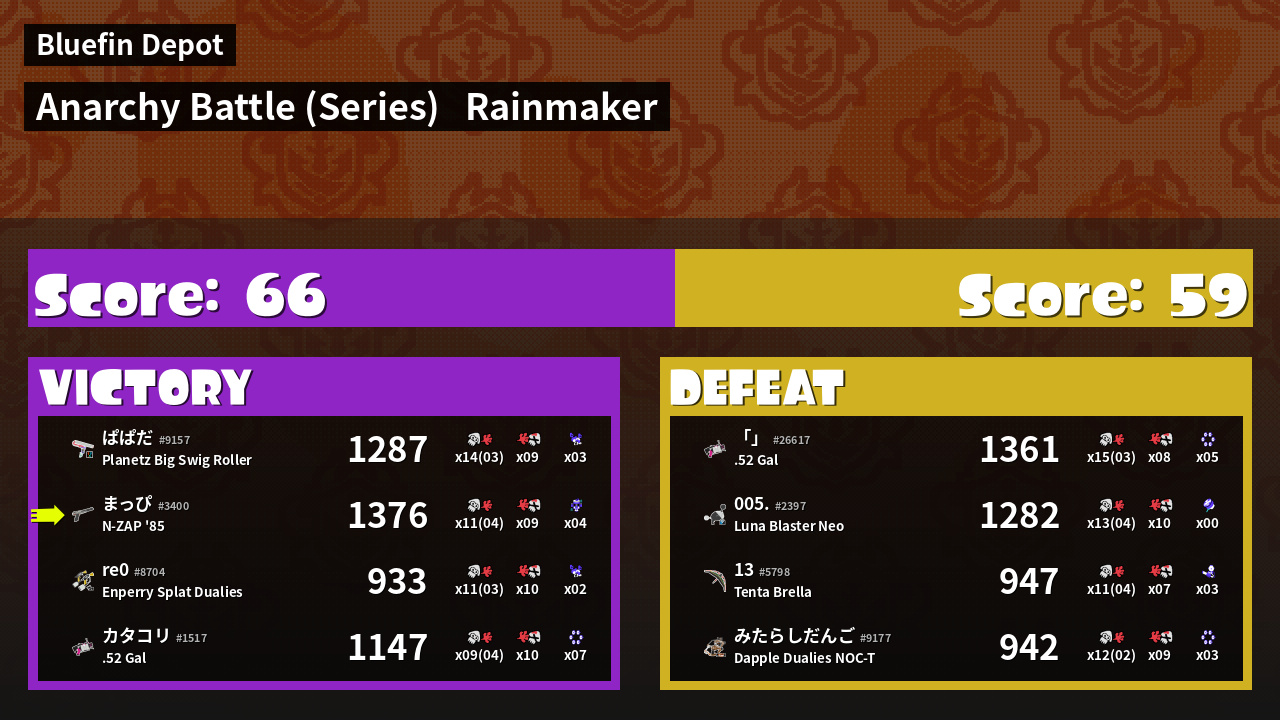 | Mode | Rainmaker - Anarchy Battle (Series) |