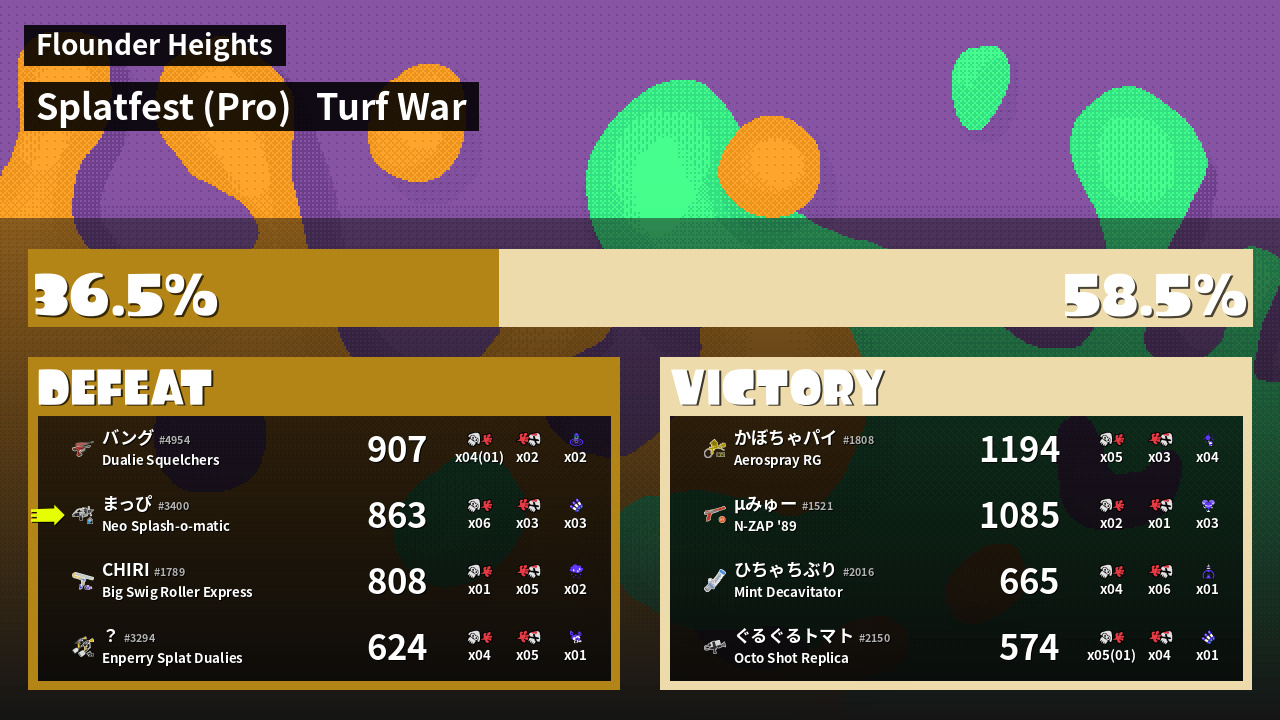 | Mode | Turf War - Splatfest (Pro) |