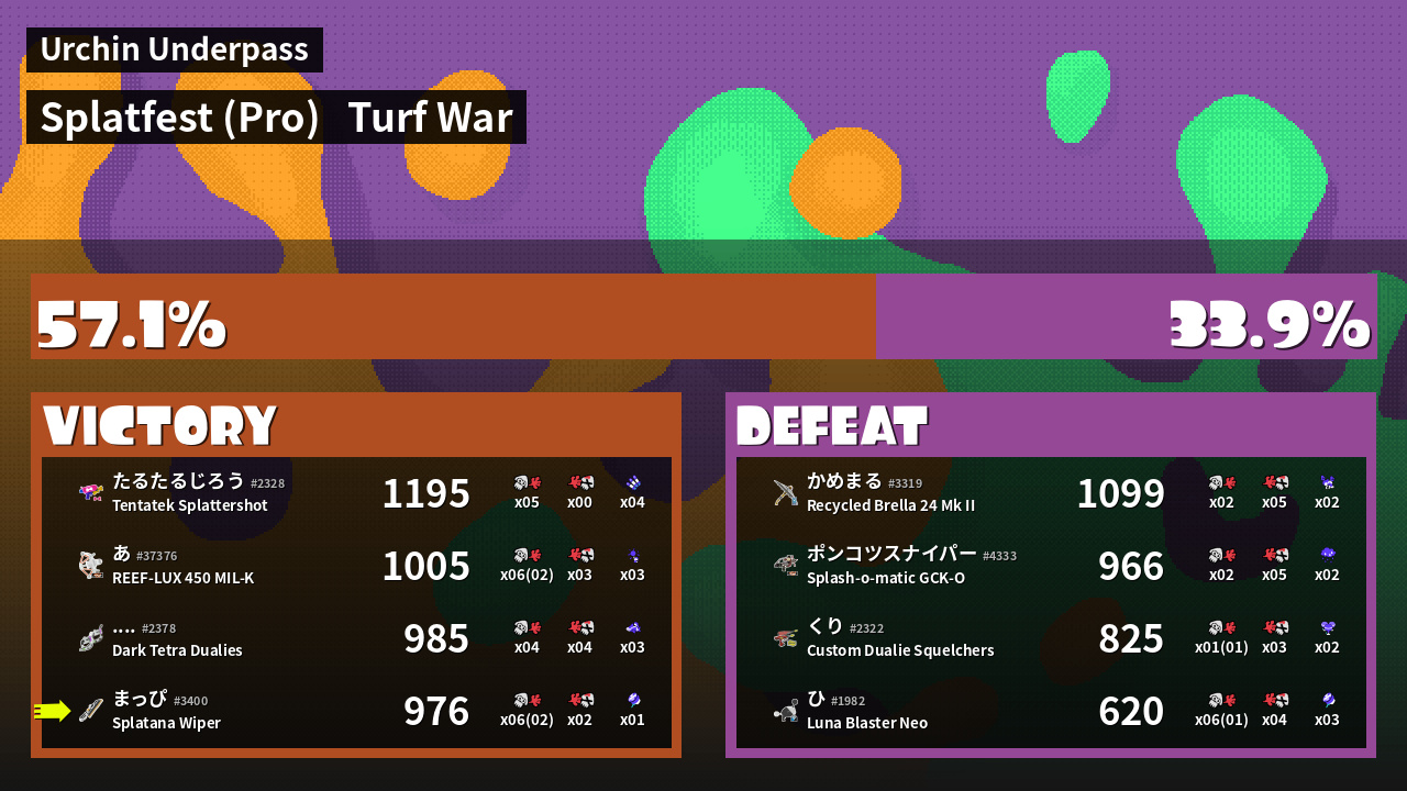 | Mode | Turf War - Splatfest (Pro) |