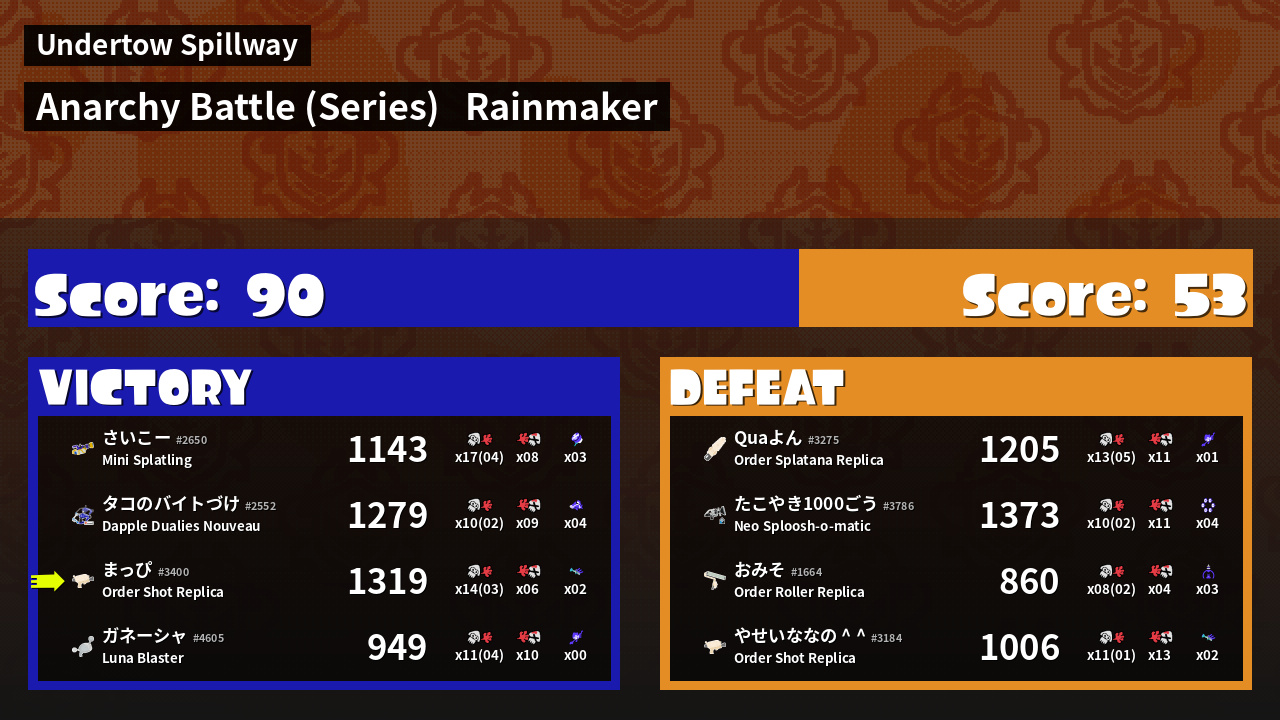 | Mode | Rainmaker - Anarchy Battle (Series) |