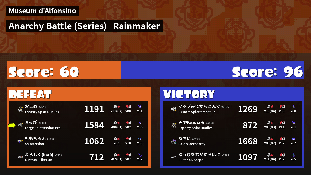 | Mode | Rainmaker - Anarchy Battle (Series) |