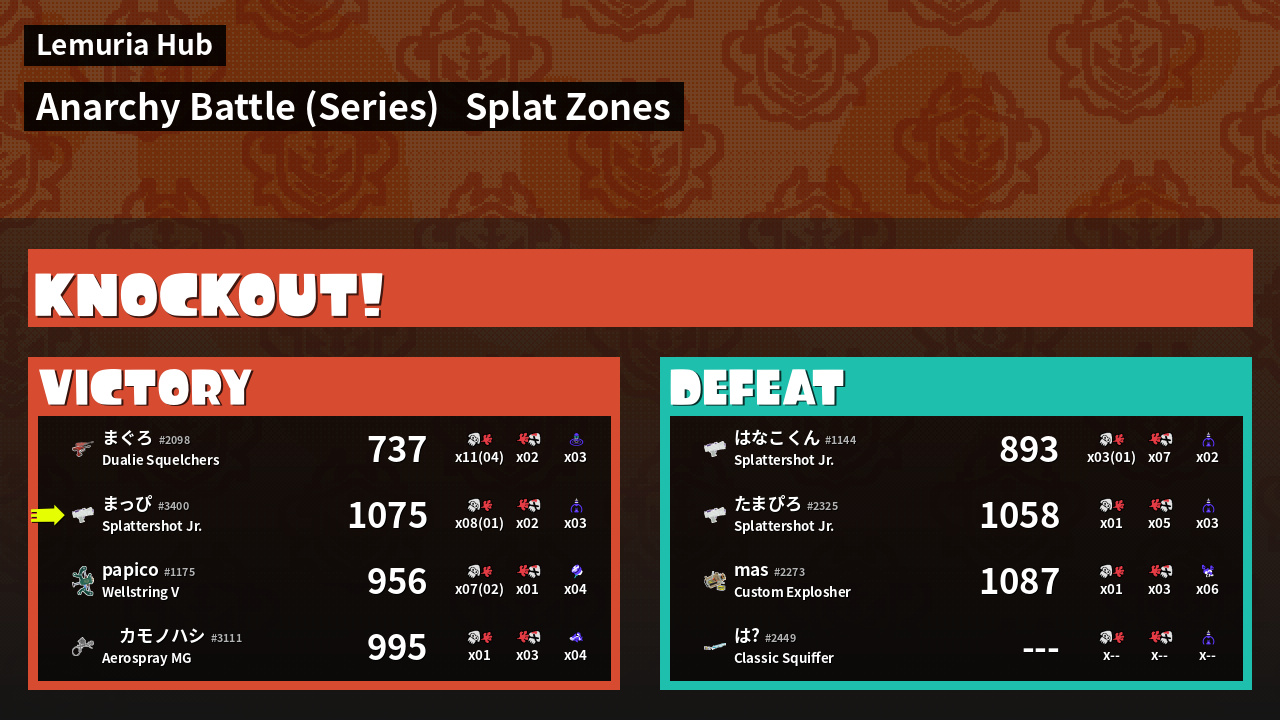 | Mode | Splat Zones - Anarchy Battle (Series) |