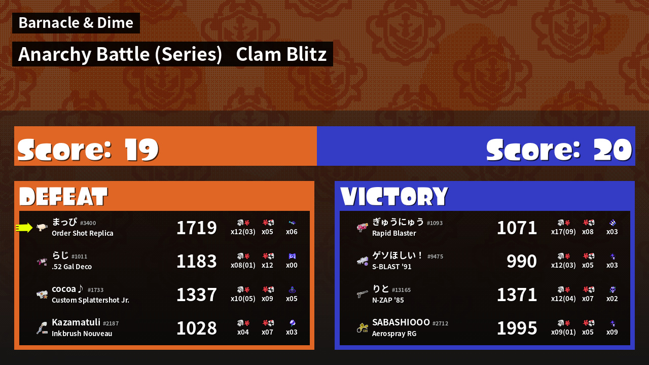 Results of まっぴ's Battle