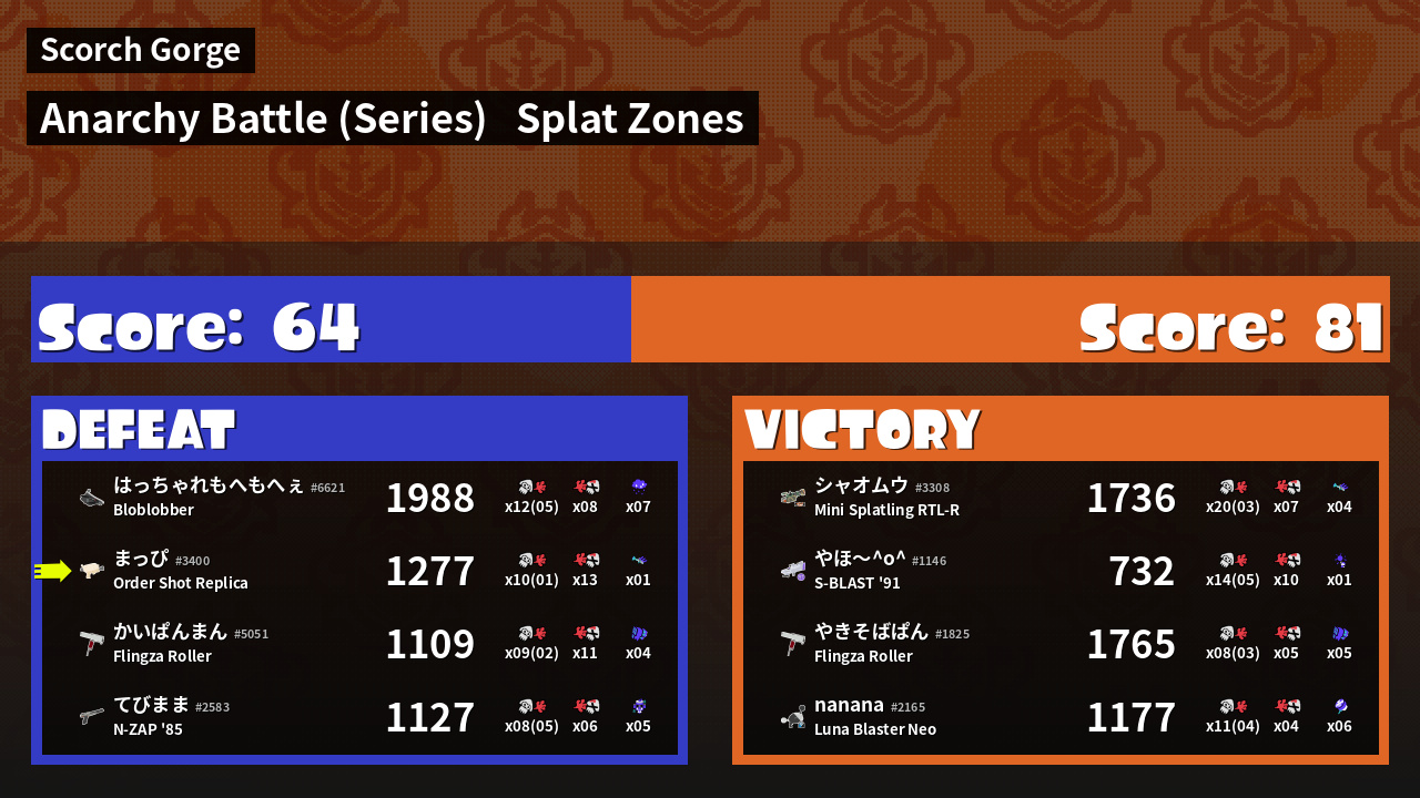 | Mode | Splat Zones - Anarchy Battle (Series) |
