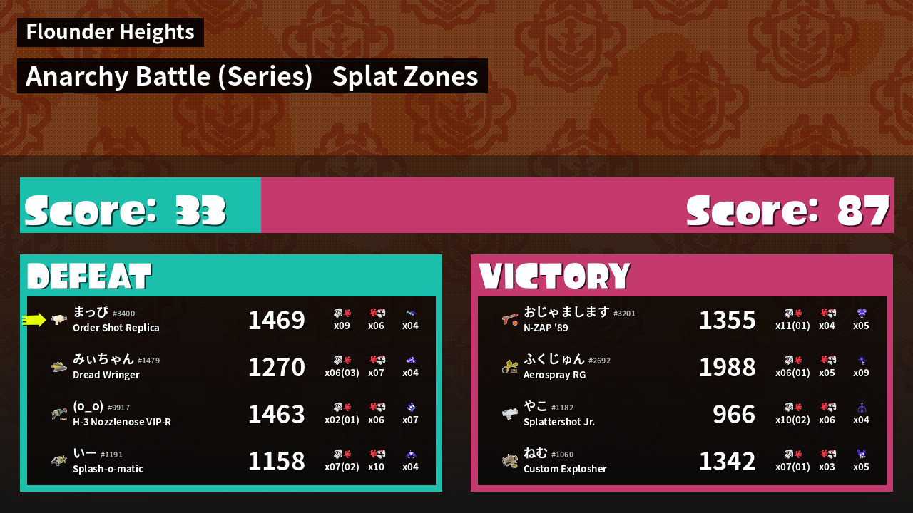 | Mode | Splat Zones - Anarchy Battle (Series) |