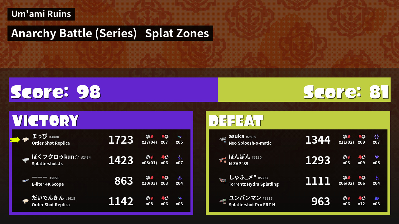 Results of まっぴ's Battle