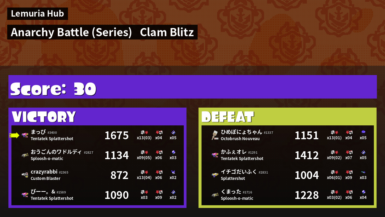 | Mode | Clam Blitz - Anarchy Battle (Series) |
