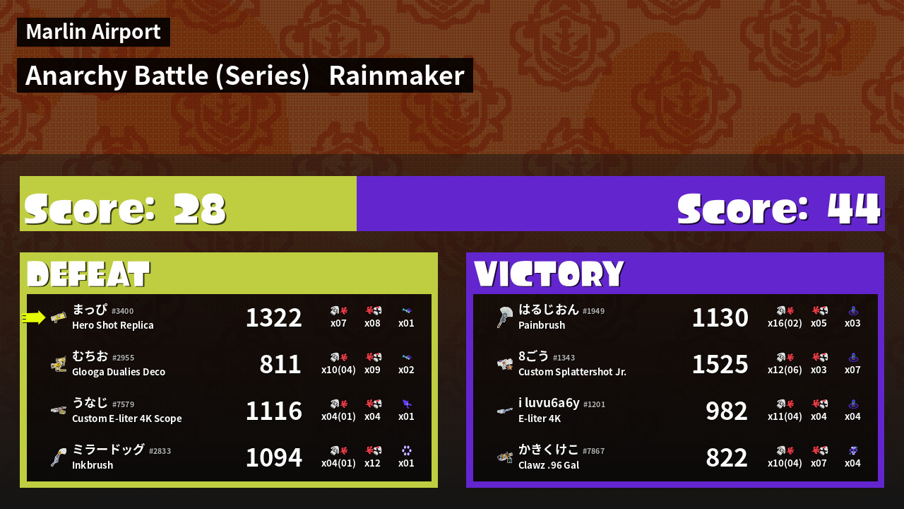 | Mode | Rainmaker - Anarchy Battle (Series) |