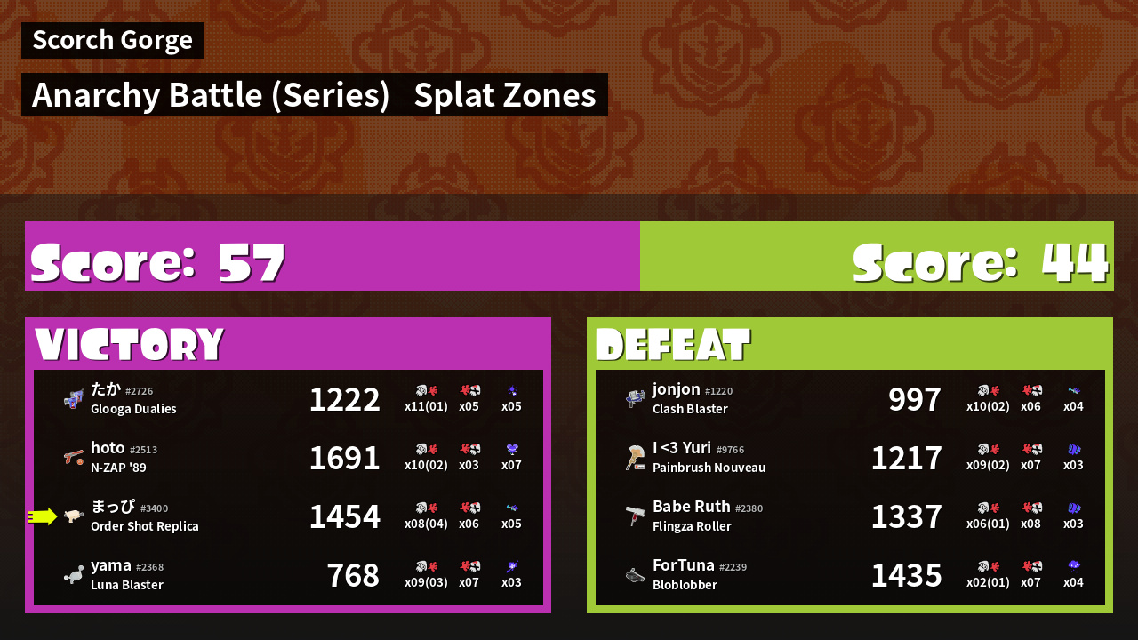 | Mode | Splat Zones - Anarchy Battle (Series) |