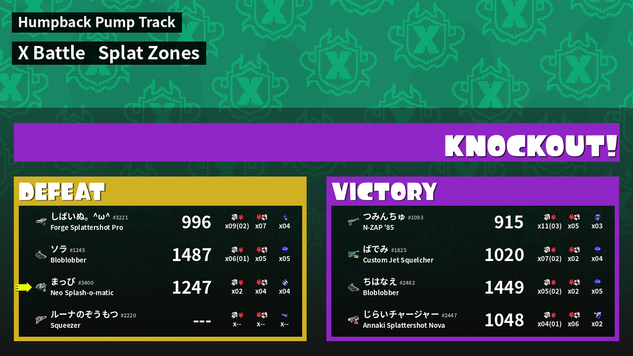 | Medals | #1 Splat Zone Guard #1 Super Jump Spot #1 Ground Traveler |