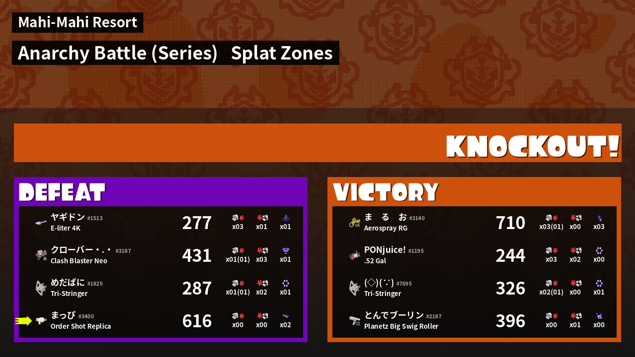 | Mode | Splat Zones - Anarchy Battle (Series) |